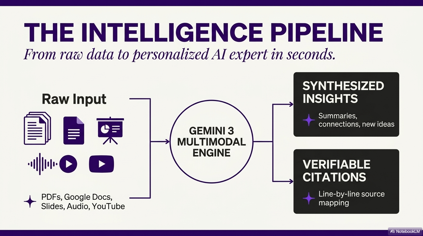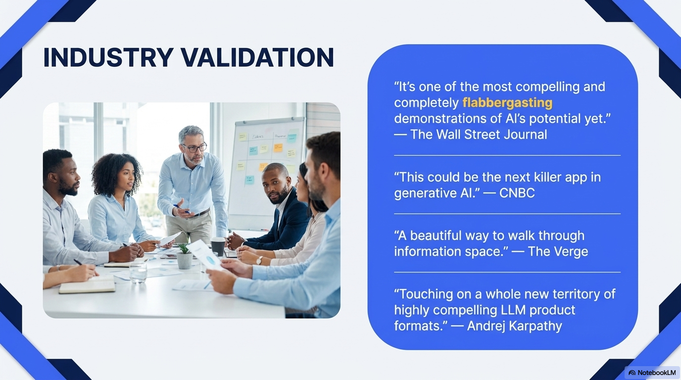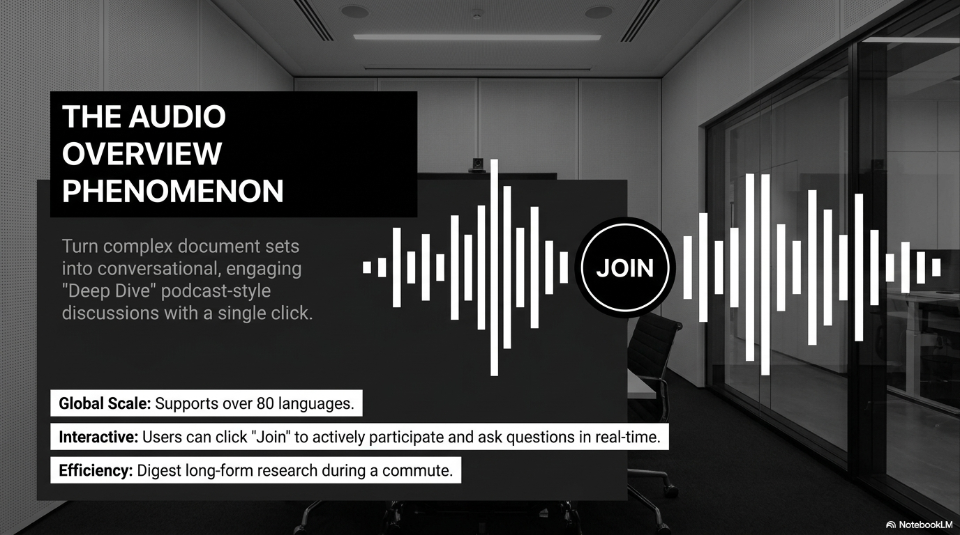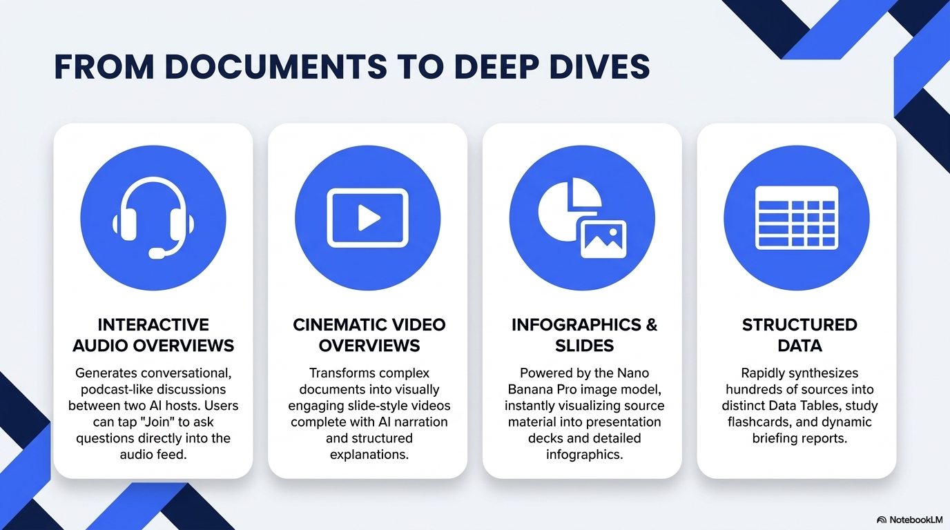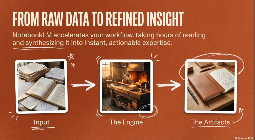 Click 'Generate' and watch NotebookLM transform your sources into a stunning presentation.